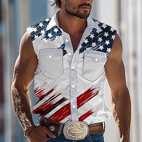 男性用 アメリカの国旗 ウエスタンシャツ ボタンアップシャツ カウボーイシャツ 長袖 洋式 日常 折襟 襟付きシャツ 3Dプリント フロントポケット ブラック ホワイト ルビーレッド ブルー