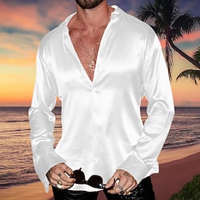 男性用 シャツ サテンシャツ カジュアルシャツ ボタンアップシャツ 平織り 結婚式 バケーション ライトブルー ブラック ホワイト ワイン 長袖 ラペル 春夏 衣類