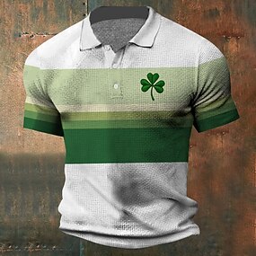 男性用 シャムロック ワッフルポロシャツ 半袖 ポロシャツ 襟付きシャツ カジュアル ビジネスカジュアル パーティーイブニングウェア 日常着 フェスティバル衣装 ボタン 3Dプリント 夏 ブラック ホワイト ダークグリーン