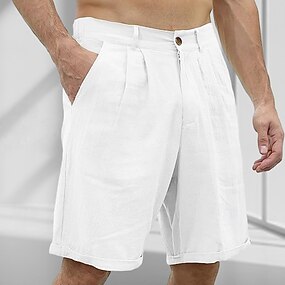 男性用 ショーツ リネンショーツ ドレスショーツ サマーショーツ ビーチショーツ プリーツ まっすぐな足 平織り 高通気性 ソフト 膝丈 ビジネス 日常 祝日 ファッション ストリートファッション ブラック ホワイト 伸縮性なし