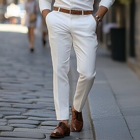 男性用 スーツ ズボン スーツパンツ ポケット 平織り 履き心地よい ソフト 全長 結婚式 ビジネス カジュアル ファッション ストリートファッション ブラック ホワイト