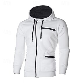 男性用 パーカー フルジップパーカー ブラック ホワイト カーキ色 フード付き 平織り ポケット スポーツ 日常 祝日 ポリエステル ストリートファッション ベーシック カジュアル 春 秋 衣類 パーカー トレーナー
