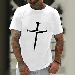 男性用 十字架 キリスト教徒 Tシャツ 半袖 Tシャツ 3Dプリント クルーネック シャツ レトリ/ヴィンテージ カジュアル ストリート カジュアル バー ブラック ホワイト ブルー 春夏 衣類 S M L XL 2XL 3XL