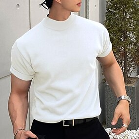 男性用 Tシャツ タートルネックシャツ 半袖 スタンド 夏 春 平織り ファッション カジュアル 快適 クラシック バケーション ストリート 祝日 ブラック ホワイト グレー メンズトップTシャツ