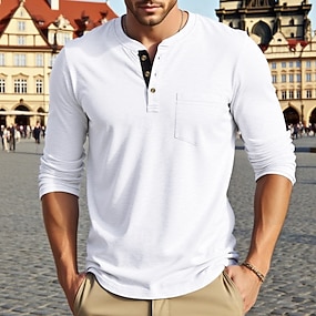 男性用 ヘンリーシャツ ティートップ 長袖シャツ 純色 ヘンリー アウトドア ストリート 長袖 ソフト 衣類 日常 カジュアル ストリートスタイル