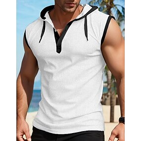 男性用 ワッフルシャツ タンクトップ アンダーシャツ ノースリーブシャツ ノースリーブ フード付き 夏 平織り ファッション デザイナー 筋 アウトドア お出かけ ジム用 ブラック ホワイト ルビーレッド メンズトップTシャツ