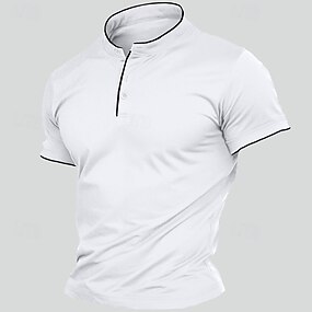 男性用 ボタンTシャツ Tシャツ ヘンリーシャツ 半袖シャツ 半袖 ヘンリー 夏 単色/無地 ファッション デザイナー 編み バケーション ストリート お出かけ 海軍 ブラック ホワイト メンズトップTシャツ