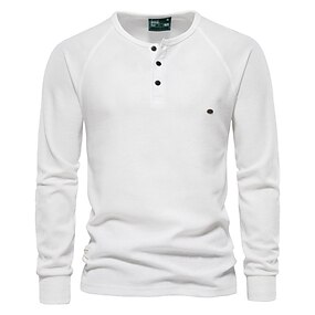男性用 ワッフルヘンリーシャツ ティートップ 長袖シャツ 長袖 ヘンリー 夏 純色 ファッション デザイナー 快適 ボタン Vネック アウトドア カジュアル 日常 ブラック ホワイト ブルー メンズトップTシャツ