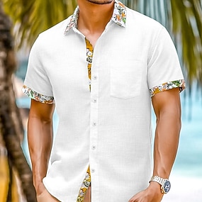 男性用 シャツ リネンシャツ サマーシャツ ビーチウェア ボタンアップシャツ フラワープリント バケーション キュリーズ ホワイト ネイビーブルー グリーン カーキ色 半袖 カラー 夏 春夏 衣類