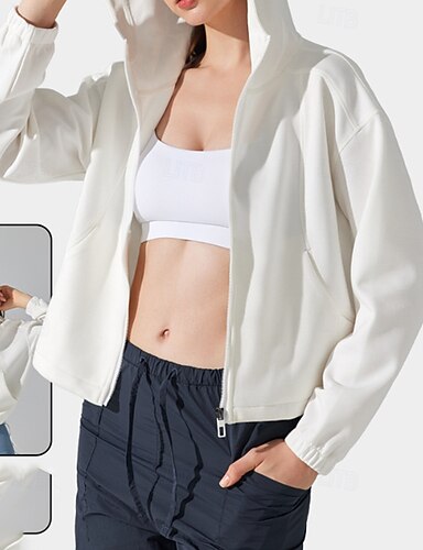女性用 フルジップパーカー アウトドアジャケット フード付きジャケット スポーツジャケット ジッパーポケット 長袖 トップス アスレイジャー 秋 ソリッド コットン 保温 防風 ピラティス ランニング ヨガ スポーツウェア アクティブウェア ブラック ホワイト ピンク