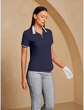 女性用 ポロシャツ ダークブルー ローズレッド 半袖 シャツ レディース ゴルフウェア ウェア アウトフィット ウェア アパレル