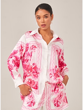 女性用 ルビーレッド エレガント ボヘミア 旅行度假风 シャツカラー 夏
