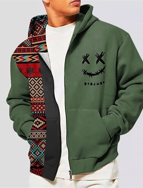 男性用 純色 カウボーイ フリース フーディーズ ファッション クール 長袖 フード付き 祝日 ストリートウェア ブラウン カーキ色 ジッパー ポケット 秋 冬 デザイナー