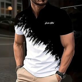 男性用 カラーブロック 幾何学的な ポロ 半袖 ポロシャツ 襟付きシャツ カジュアル アウトドア アスレイジャー デイリーウェア 3Dプリント 夏 ブラックホワイト