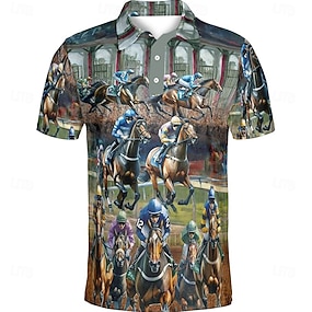ケンタッキーダービー 男性用 競馬 ポロ 半袖 ポロシャツ 襟付きシャツ ビジネスカジュアル アウトドア デイリーウェア フェスティバル衣装 3Dプリント 夏 春 秋 ブラック グリーン グレー