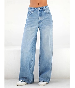 女性用 ジーンズ ワイドレッグ ファッション ストリートファッション 全長 ハイウエスト 平織り ポケット 快適 ソフト マイクロエラスティック アウトドア ストリート ブルー 春 & 秋 春、夏、秋、冬 レギュラー