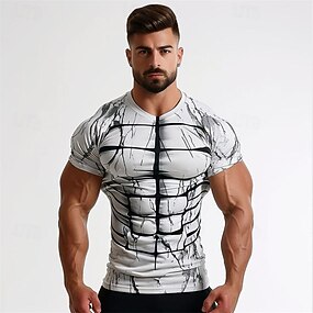 男性用 グラフィック 筋 Tシャツ 半袖 Tシャツ 3Dプリント クルーネック シャツ 日常 カジュアル サブカルチャー スポーツ・アウトドア 祝日 お出かけ ホワイト コールドホワイト ライトグレー 春夏 衣類 S M L XL 2XL 3XL
