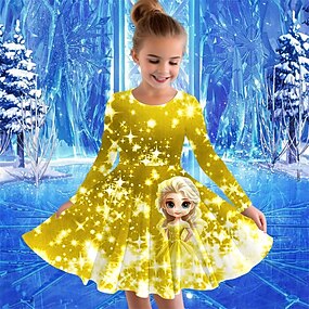 女子 3D グラフィック カートゥン スノーフレーク柄 ドレス スノーフレークドレス 長袖 夏 春 バケーション 日常 祝日 美しい 甘い 子供 4〜12年 カジュアルドレス A ラインドレス 膝丈 レギュラー