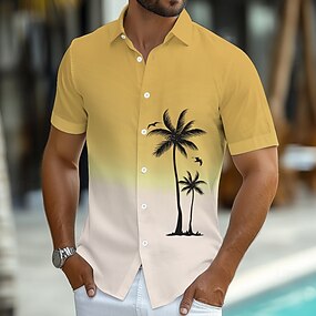 男性用 ココナッツの木 グラデーションカラー 熱帯植物 アロハシャツ ボタンアップシャツ 半袖 ハワイアン リゾート バケーション 祝日 ビーチウェア 夏 春 折襟 襟付きシャツ イエロー ピンク ブルー オレンジ グリーン