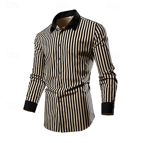 男性用 シャツ ドレスシャツ ボタンアップシャツ チェック 結婚式 日常 白青黒ストライプ イエロー ワイン 長袖 ラペル 春 & 秋 衣類 パッチワーク