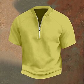 男性用 ポロシャツ クォータージップポロ デイリーウェア デート クォータージップ 半袖 ファッション ベーシック 平織り ジッパー 夏 レギュラー ライトイエロー ブラック イエロー ダークブルー パープル オレンジ ポロシャツ