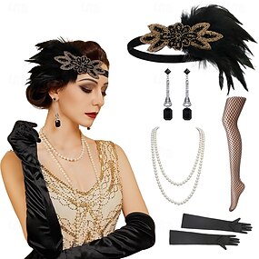 ヴィンテージ 1920年代風 ギャツビー フラッパー・ヘッドバンド 付属品セット チャールストン 結婚式のゲスト ファッション 仮装 女性用 マスカレード 披露宴演出商品 バチェロレッテパーティー 祭り 成人 ブレスレット グローブ イヤリング オールシーズン