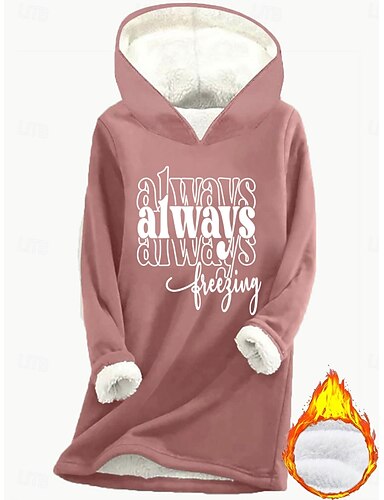 ウィメンズフーディースウェットシャツプルオーバーフリースライニング暖かいパジャマ暖かいふわふわコンフォートシェルパフリースライニングレターカジュアルスポーツプリント長袖ブラックダークピンク赤青灰秋・冬