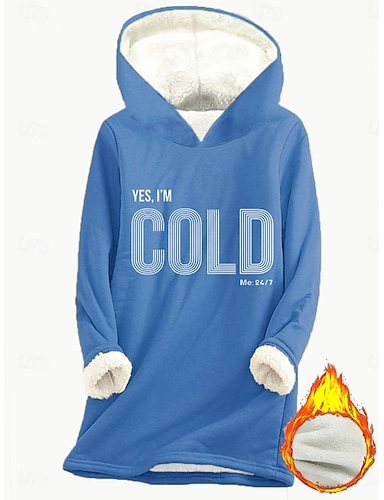 女性用 プルオーバー フーディー スウェットシャツ グラフィック レタード あたたか カジュアル シェルパフリース 長袖 フード付き ロングトップス ストリート 日常着 カジュアル プリント ダークピンク ブルー グレー 秋 冬