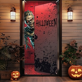 ハロウィンのドアカバー、ドアのタペストリー、ドアカーテン、装飾用背景幕、玄関ドア用バナー、農家のホリデーパーティー、屋内屋外装飾用品