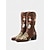 レディースブラウンの刺繍入りウエスタンニーハイブーツ - 秋のストリートウェア、フェスティバル、カントリーをテーマにした服装にぴったりのヴィンテージの尖ったつま先のフェイクレザーカウボーイスタイル
