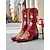 女性用レッドフェイクレザー刺繍カウボーイブーツ、花柄、ブロックヒール、レトロなウエスタンスタイル、フェスティバル、カジュアルなお出かけ、クリスマスに最適