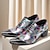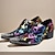 メンズ抽象アートプリントスリッポン本革ローファー、カラフルな芸術的なスタイルのドレスシューズ、ファッションショー、クリエイティブなイベント、夜のお出かけに最適