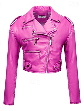 女性用 レザージャケット 保温 快適 ジッパー カジュアル 純色 バケーション ストリート カジュアル デイリーウェア ショート ラペル レギュラー 長袖 アウターウェア ブラック フクシャ コーヒー 秋 冬