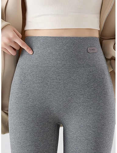 女性用 フリースパンツ レギンス ファッション ベーシック カジュアル 全長 ハイウエスト 平織り ハイカット 快適 ソフト 伸縮性あり 家 日常 ダークグレー 暗灰色 ブラック ベージュ 春 秋 冬 スリムフィット
