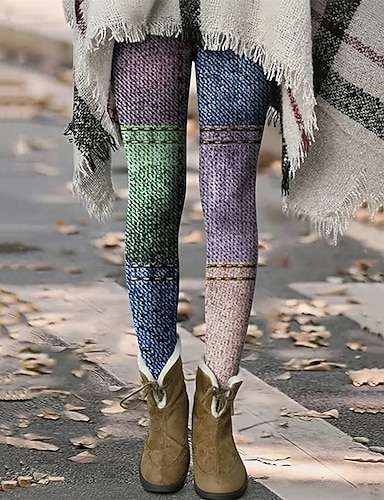 女性用 スラックス レギンス 心地よいレギンス 旅行度假风 ヴィンテージ ストリートファッション 全長 ナチュラルウエスト グラフィック パッチワーク ドローストリング パッチワーク 弾性ウエスト 快適 屋外 高弾性 アウトドア バケーション ストリートウェア ブルー ダークブルー 秋 冬 タイト