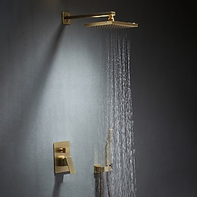 シャワー蛇口、シャワーシステムセット、レインフォールアンティークブラスシャワーフィクスチャ8インチシャワーヘッドハンドル付きシャワーウォーターフォールタブスパウトウォールマウント屋外シャワーシステム、シャワーシェルフ付き