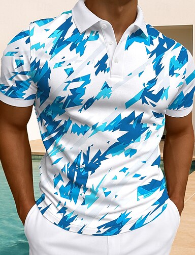男性用 幾何学模様 抽象的 ポロ 半袖 ポロシャツ ラペル カジュアル アスレイジャー 3Dプリント ボタン 夏 ブルー パープル グリーン