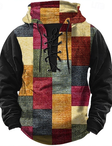 男性用 幾何学模様 フーディーズ ファッション クール 長袖 フード付き ブラック ブルー ドローストリング パッチワーク 秋 冬 デザイナー