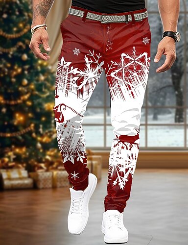 クリスマス 男性用 幾何学模様 スーツ ミディアムウエスト カジュアル パーティーイブニングウェア 日常着 祝日 ジッパー ポケット 夏 春 秋 3Dプリント レッド ブルー グリーン