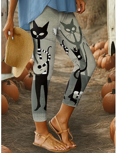 ハロウィン レディース レギンズ バケーション ヴィンテージ ファッション アンクルレングス ハイウエスト パンツ グラフィック アニマル ジオメトリック プリンティング ソフト 通気性のある ストレッチ アウトドア デイリー グレー グリーン ロビンズエッグブルー レッド スプリング 秋