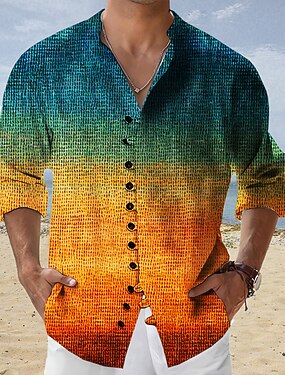 男性用 勾配 幾何学模様 シャツ ボタンアップシャツ 長袖 ファッション ストリートファッション デザイナー アウトドア カジュアル 日常 夏 春 秋 スタンド プリント イエロー ブルー パープル オレンジ グリーン