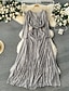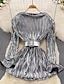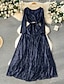 女性用 ミディドレス スパンコールドレス エレガント ファッション 近代の アウトドア パーティー 日常 レギュラー 平織り 長袖 クルーネック シルバー 春 秋