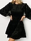 女性用 ミニドレス ベルベットドレス 二次会ドレス / カクテルドレス ペプラムドレス エレガント ファッション 近代の パーティー デート お出かけ レギュラー 平織り 長袖 クルーネック ブラック ワイン アーミーグリーン ブラウン 秋 冬