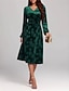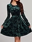 女性用 ミディドレス ベルベットドレス 二次会ドレス / カクテルドレス エレガント ファッション 近代の アウトドア パーティー パーティーイブニングウェア レギュラー フラワー 平織り 長袖 クルーネック ダークグリーン 春 冬 秋