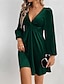 女性用 ミニドレス ベルベットドレス 二次会ドレス / カクテルドレス エレガント ファッション 近代の アウトドア パーティー パーティーイブニングウェア レギュラー 平織り 長袖 Vネック グリーン 春 秋
