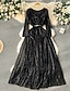 女性用 ミディドレス 黒いドレス スパンコールドレス パーティードレス 二次会ドレス / カクテルドレス ファッション 近代の パーティー カクテルパーティー お出かけ レギュラー 平織り 長袖 Vネック シルバー ブラック シャンパン 秋 冬