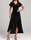 女性用 パーティードレス ホームカミングドレス 二次会ドレス / カクテルドレス フリル クルーネック 半袖 ミディドレス 結婚式のゲスト 誕生日 ブラック ホワイト 夏 春