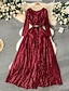 女性用 ミディドレス スパンコールドレス エレガント ファッション 近代の アウトドア パーティー 日常 レギュラー 平織り 長袖 Vネック ブラック ホワイト イエロー ルビーレッド 春 秋