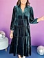 女性用 ミディドレス ベルベットドレス 二次会ドレス / カクテルドレス エレガント ヴィンテージ ファッション アウトドア パーティー パーティーイブニングウェア スリム 平織り 長袖 Vネック ダークグリーン 春 秋