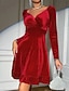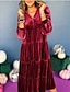女性用 ミディドレス ベルベットドレス 二次会ドレス / カクテルドレス エレガント ファッション 近代の アウトドア パーティー パーティーイブニングウェア レギュラー 平織り 長袖 Vネック ルビーレッド 春 秋